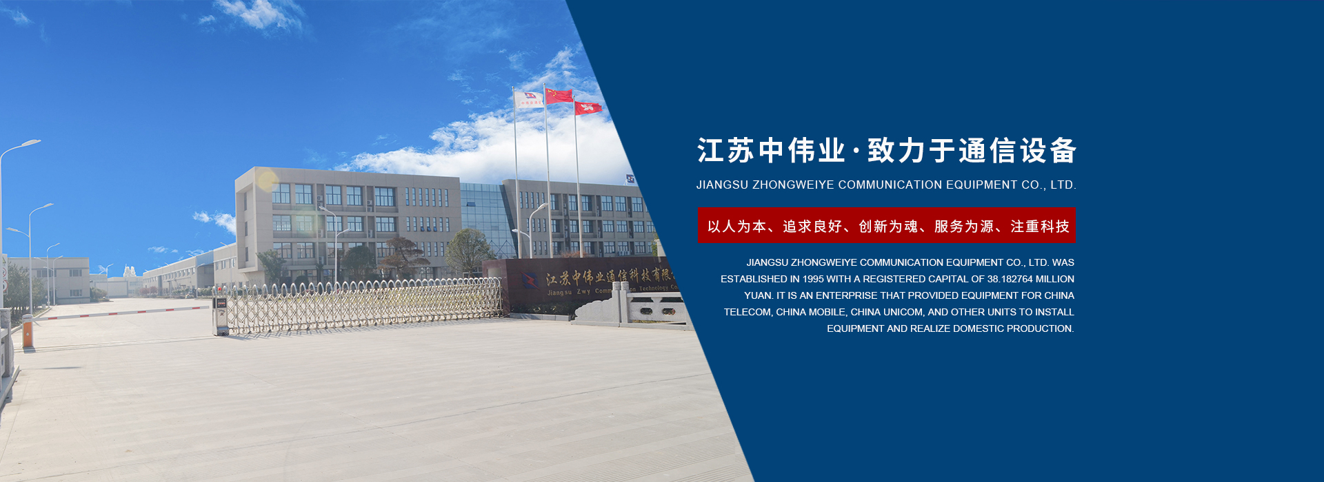 江蘇中偉業(yè)通訊設備有限公司創(chuàng)建于1995年,注冊資本為3818.2764萬元,是我國較早為華為、中國電信、中國移動、中國聯(lián)通等單位供應機站安裝材料的公司,并與其建立了長久穩(wěn)定的合作關系。